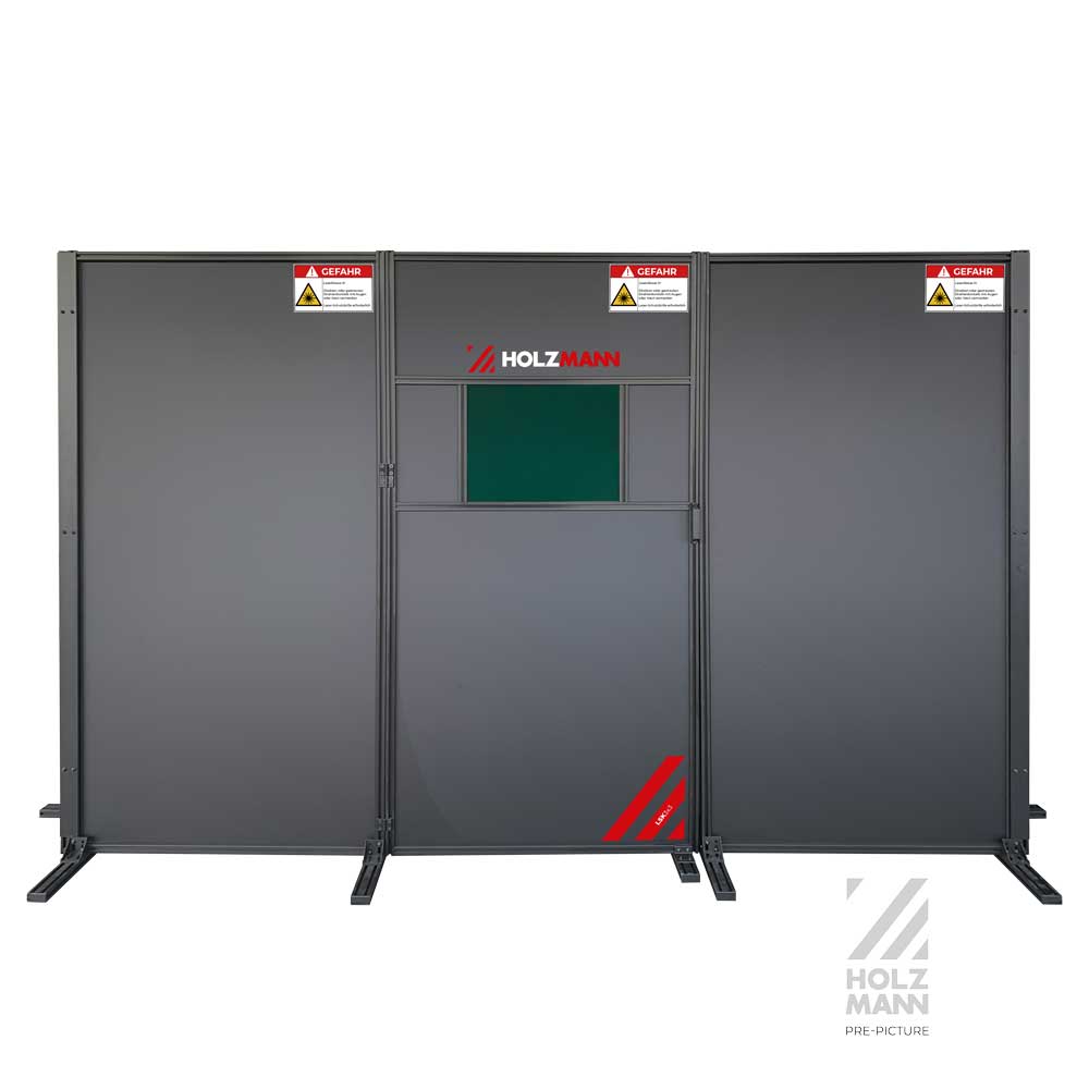 Die Holzmann Laserschweißkabine LSK3x3 in 3 × 3 m Größe überzeugt durch ihre modulare Stecksystembauweise und lässt sich einfach und unkompliziert in Ihrer Werkstatt aufbauen. Sie bietet zuverlässigen Laserschutz für Faserlaser im Wellenlängenbereich von 1050–1400 nm und erfüllt damit die Sicherheitsanforderungen beim Laserschweißen. Ideal für industrielle Anwendungen, Prototypenbau und moderne Fertigungsumgebungen.